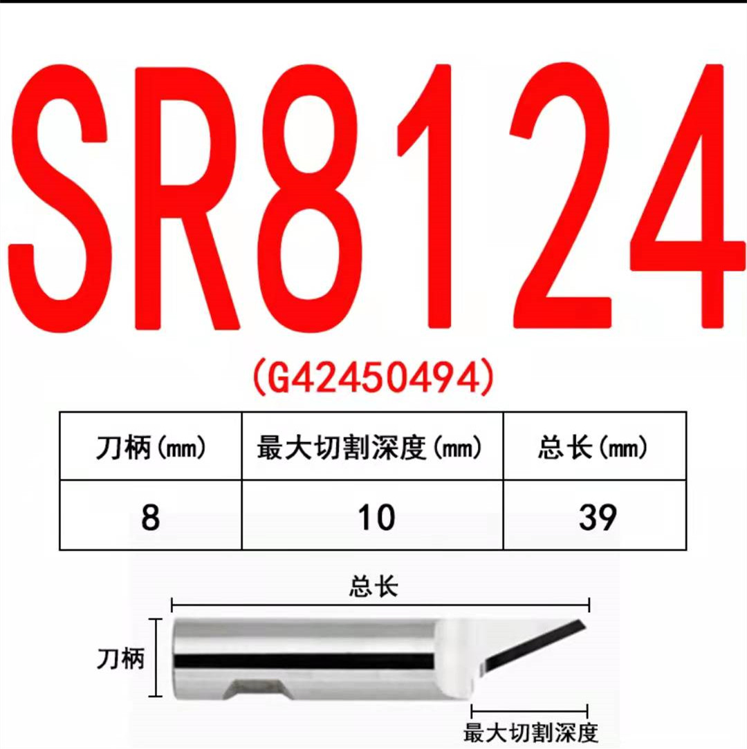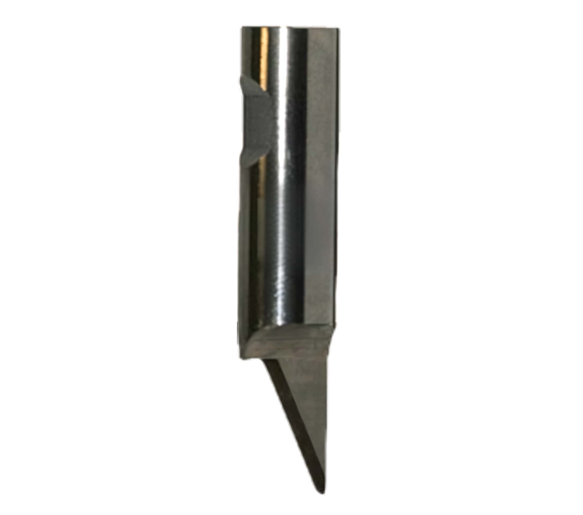 Knife blade with 8mm cylindrical shaft for use with the RM (RigidMaterial) knife tool. Good blade for cutting in different plastic corrugated materials. Can cut up to about 15mm thick materials depending on the material quality. Nominal lag value is 4.