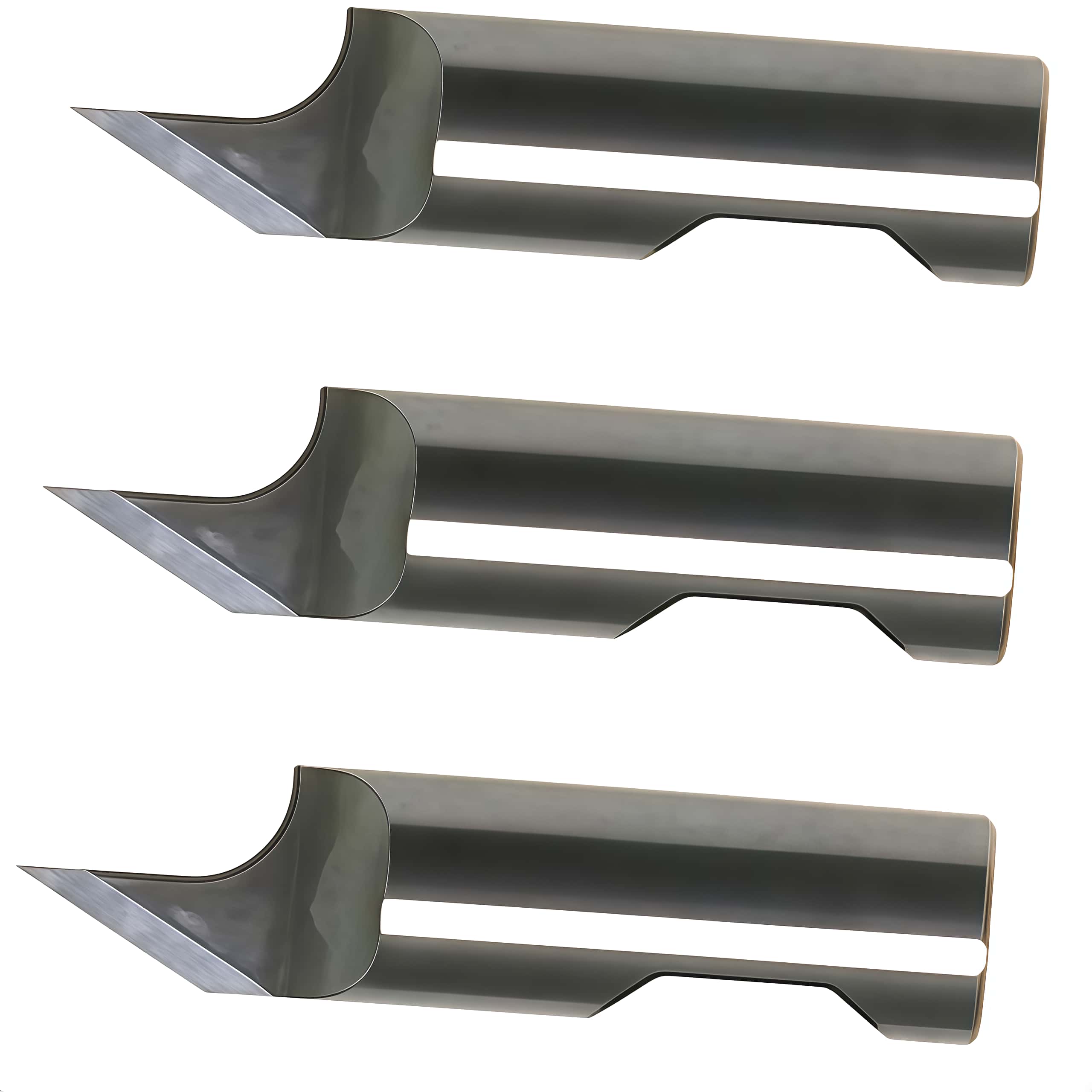 Long life tungsten carbide blade for thinner flexible materials such as folding carton, polyester film, leather, vinyl, paper. 30* cutting angle