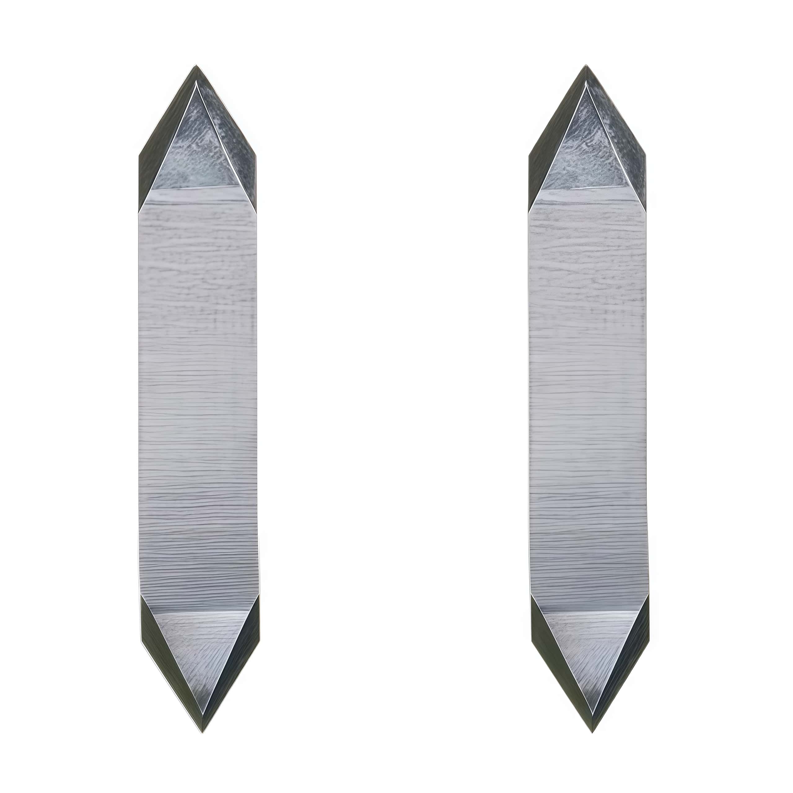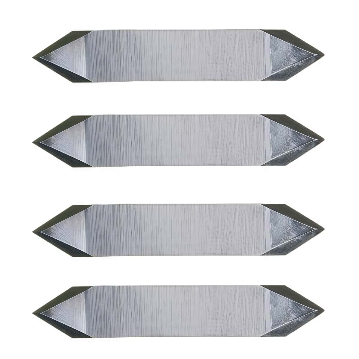 General-purpose, double-sided, 60º sword knife blade for flexible materials. Used for through-cutting of paper, cardboard, vinyl, thin plastics, styrene, etc.